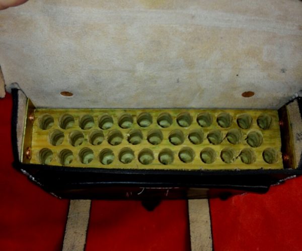 Henry Box with 4 wood blocks 30 rounds a block. R. NECE/PHILAD stamped inside box and US stamp on outside.
